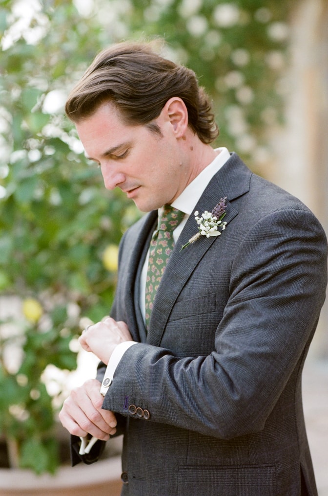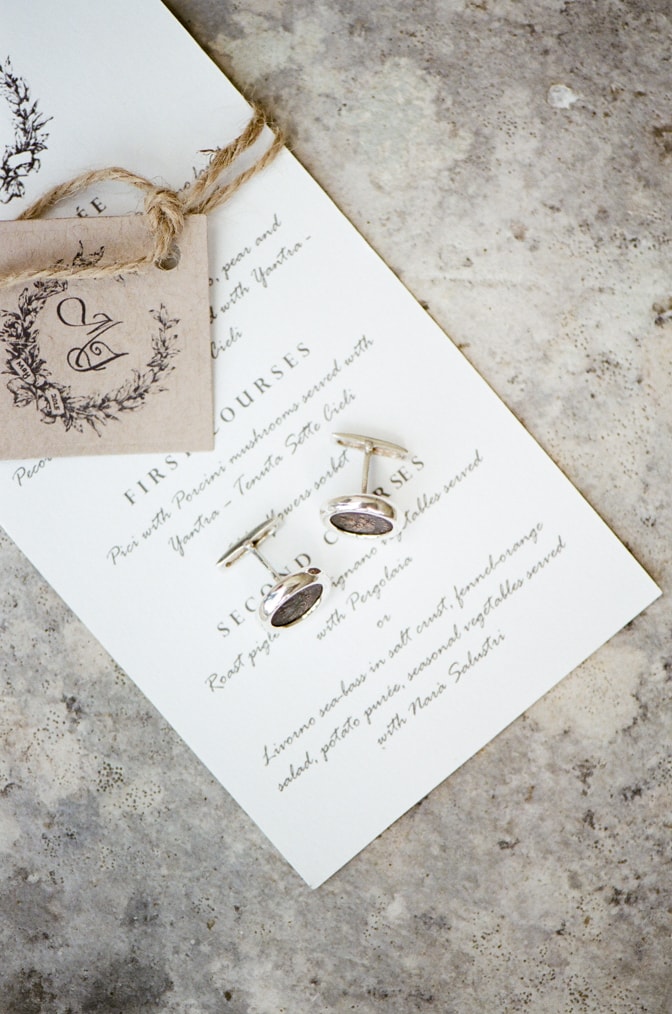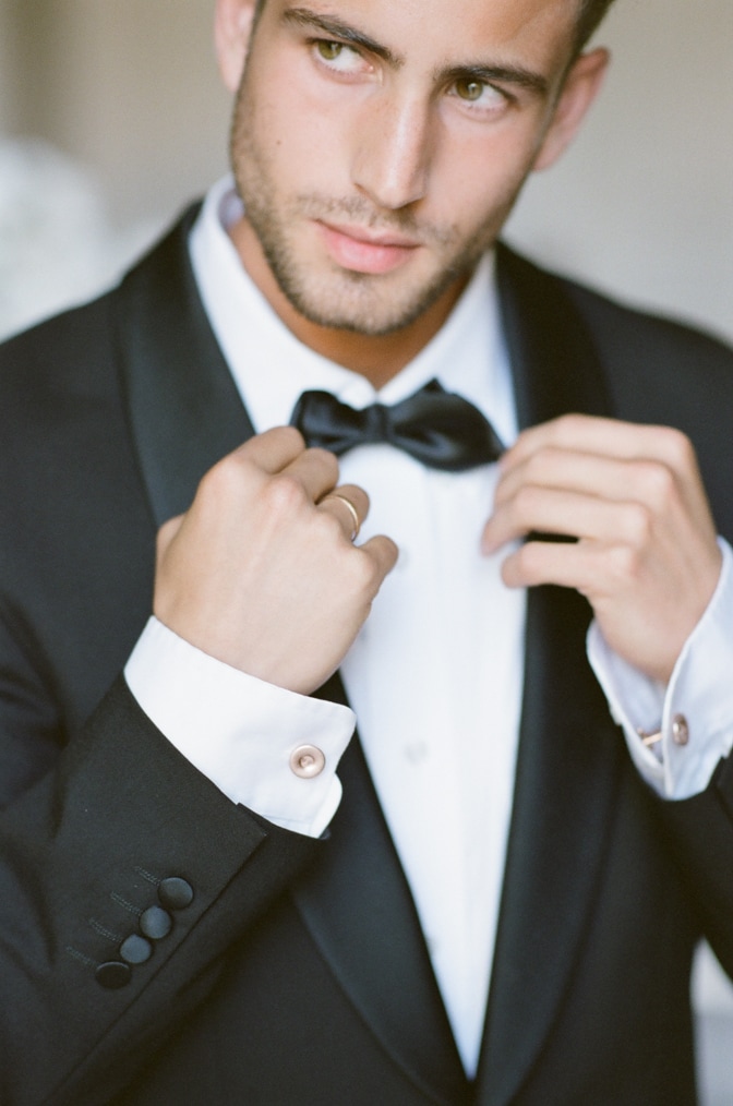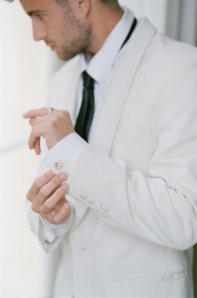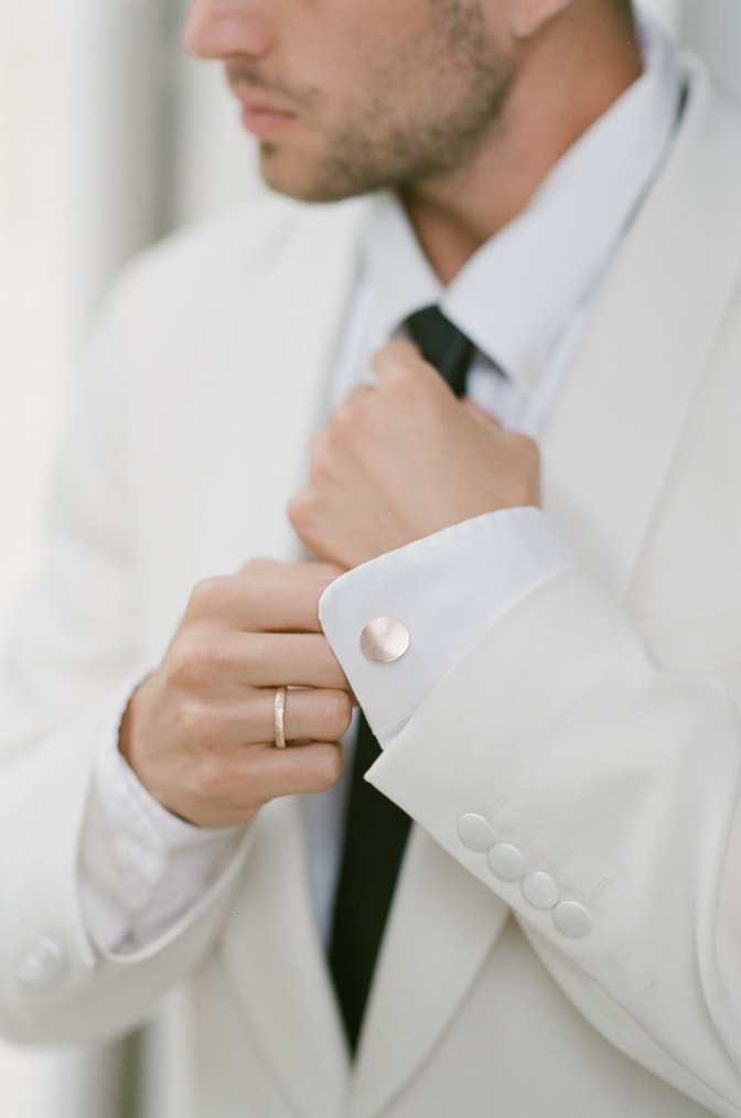 Don’t overlook the details for your modern groom wedding attire. Cufflinks are the final addition to complete your overall look. They not only enhance your suit and tie, but also make for a nice addition in more editorial detail photos. See more of this gorgeous French rehearsal dinner here.