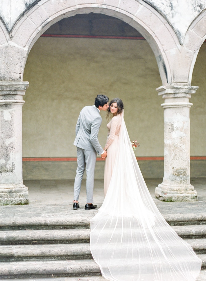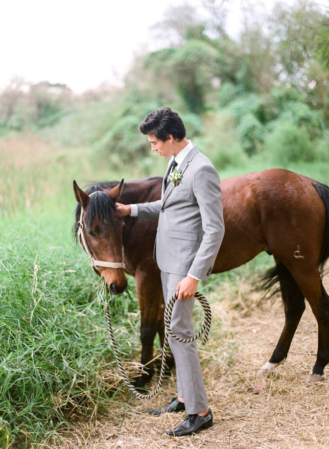 Some think that modern grooms wearing shoes without socks is trendy, and some avoid the look–it’s a matter of personal taste. There’s something intriguing about seeing a groom without socks, adding to the flair of the modern groom’s look in a unique way. If a groom can pull off the look, why shouldn’t he go for it? This new husband found his own modern groom style. He looks very neat in his modern suit–and his footwear definitely enhances the look. See more of this modern groom here.