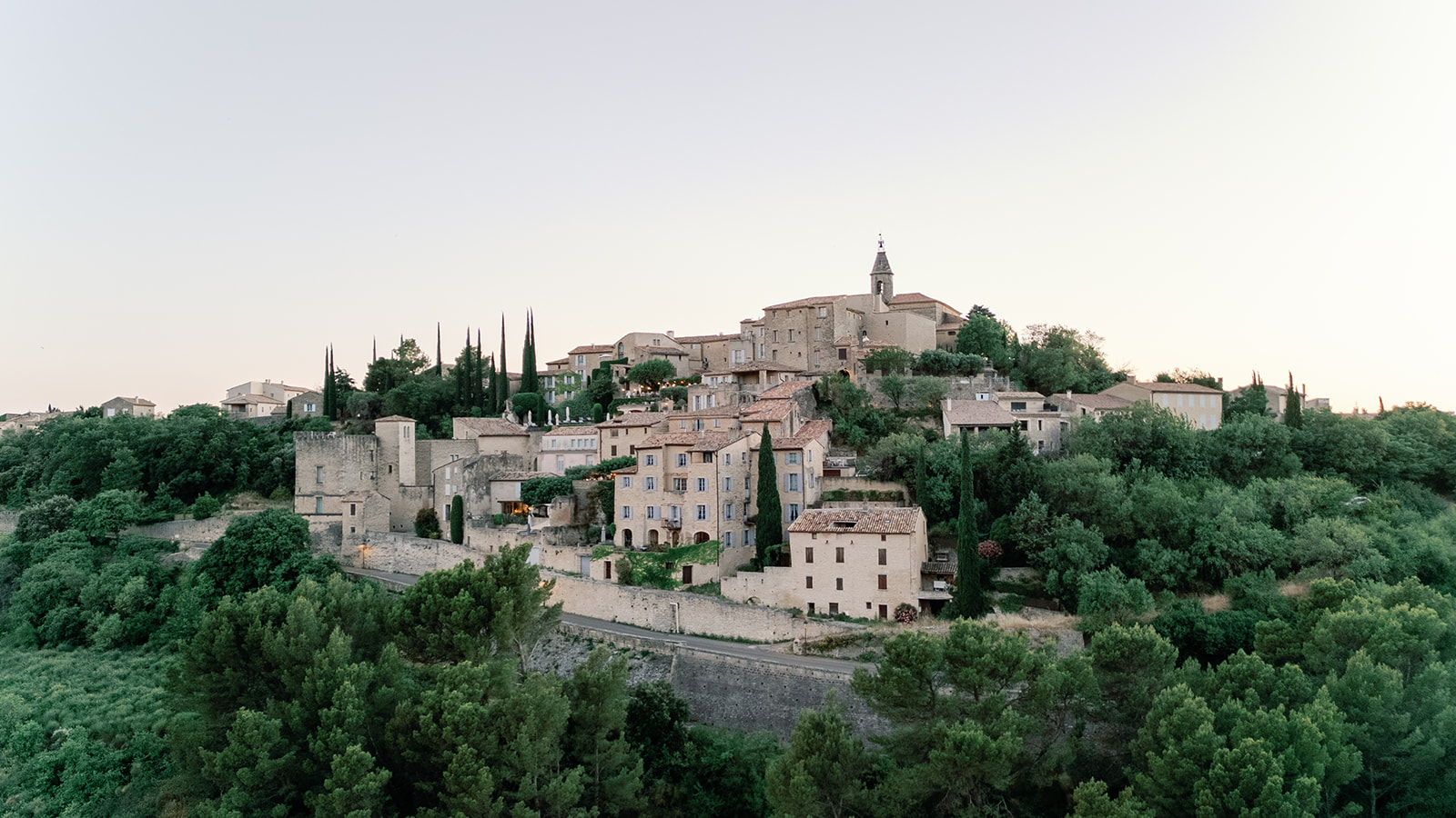 The evening before the wedding, a stylish welcome party unfolded at the stunning Hotel Crillon Le Brave in Provence, hosted by the couple for their closest friends and family. Guests, dressed in chic, modern white attire, gathered around a beautifully set long dinner table, enjoying an intimate meal as the golden Provencal sun dipped below the horizon. The sweeping views of the rustic landscape created a magical backdrop for the celebration. As the evening progressed, laughter echoed through the warm air as guests indulged in a friendly game of boules, adding a playful, local touch to this elegant gathering.
