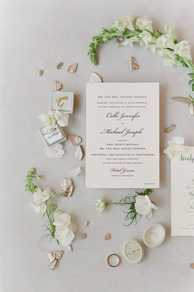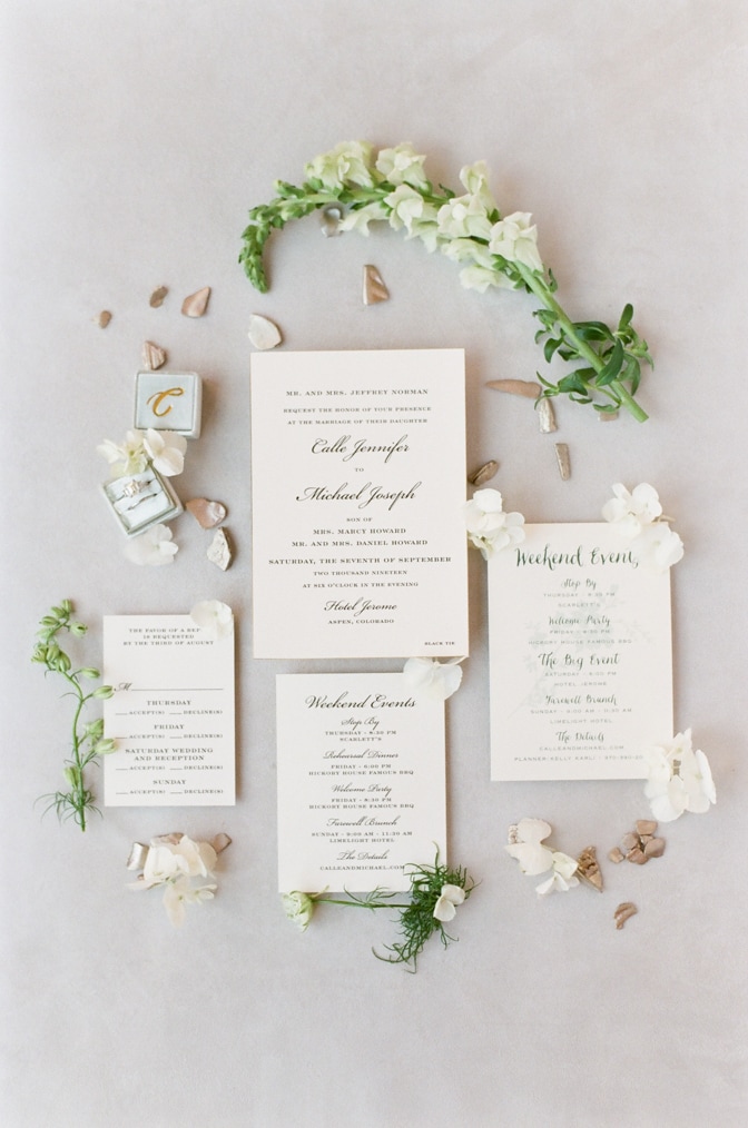 And more modern luxury wedding invitations are created by “Richard’s Notebook”. GoBella from Richard’s Notebook says: “At Go Bella by Emily Campbell, we believe that every detail of a celebration is part of an immersive experience and deserves expert attention. Richard’s Notebook, our in-house artisan paperie and custom stationery studio, allows us to maximize our design schemes and truly transport our clients and their guests, from the initial save the date to the final thank you note.”