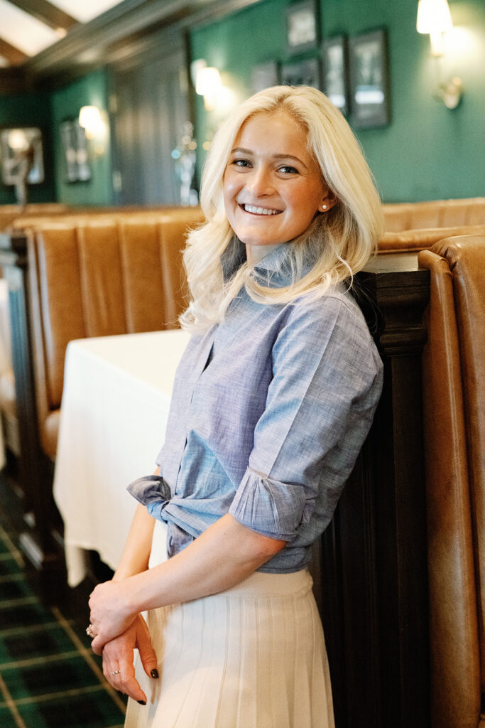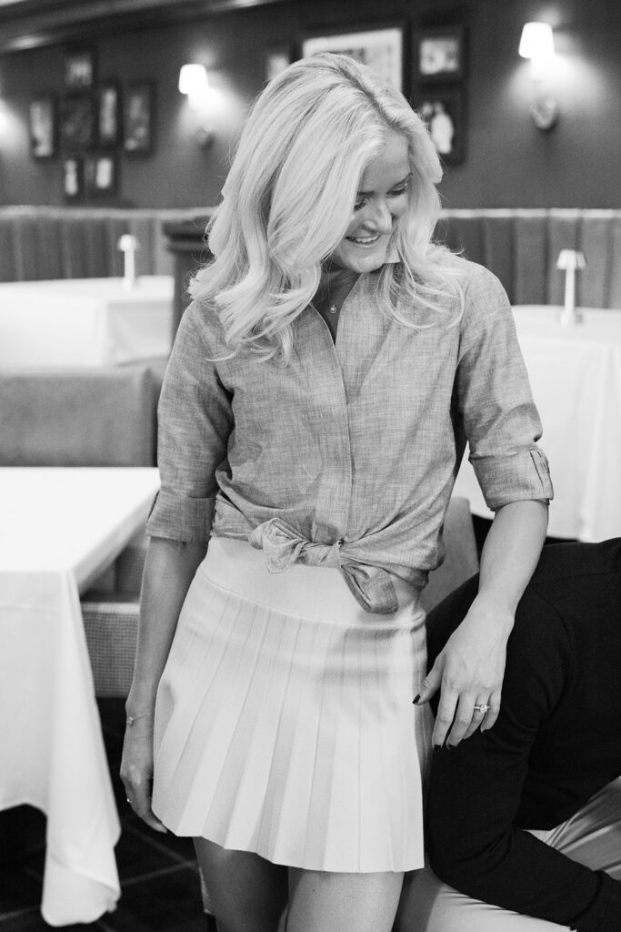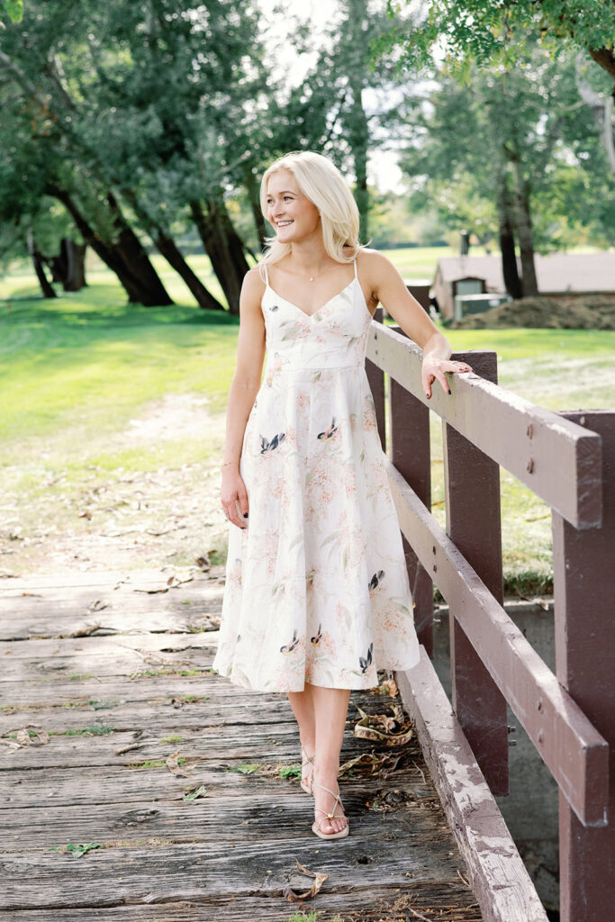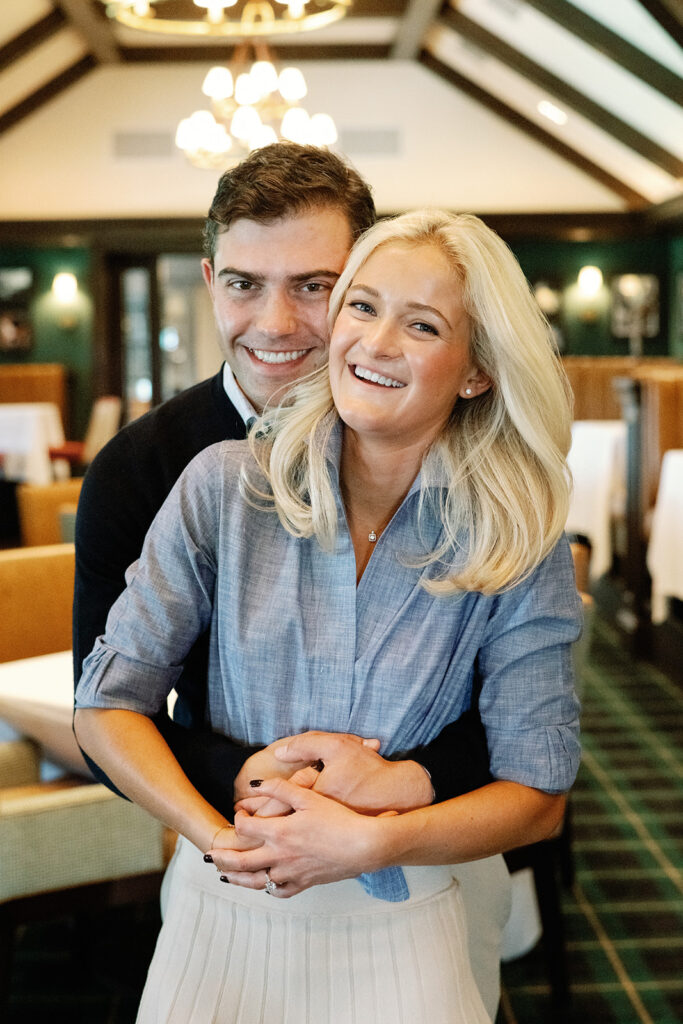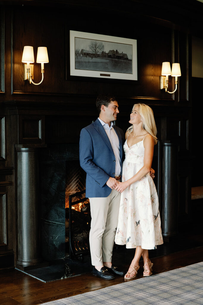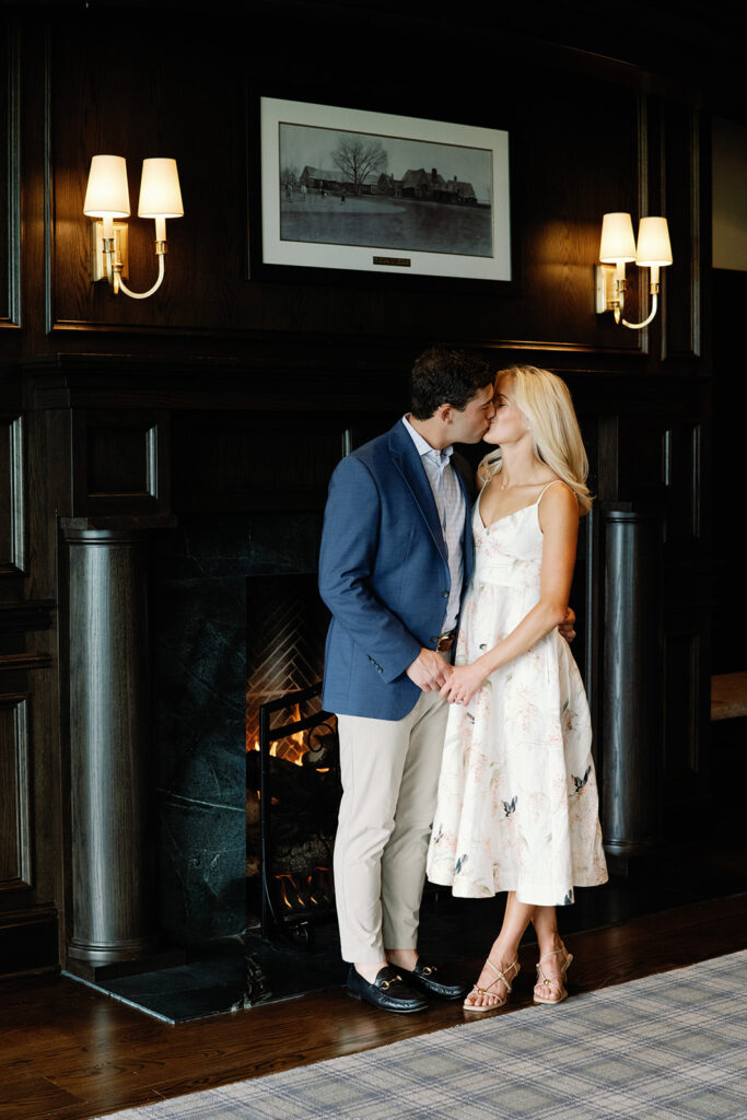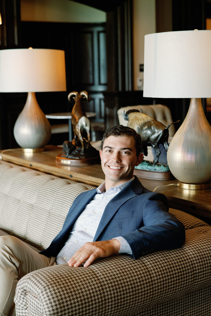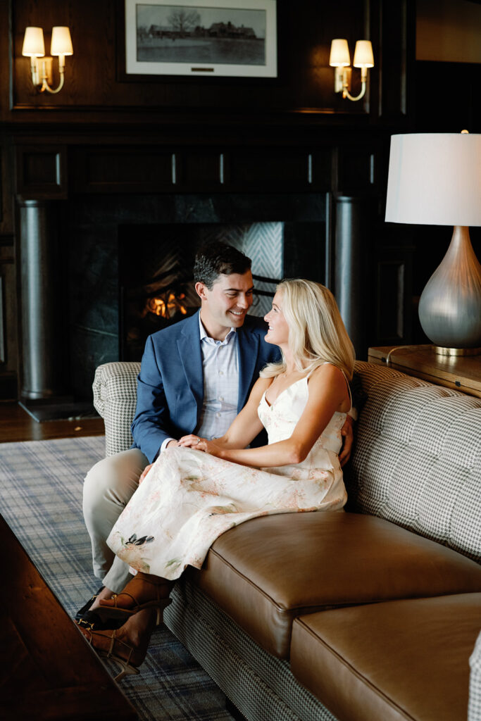 Taylor & Will enjoyed a quiet moment together at the Cherry Hills Country Club in Denver. Dressed smartly but relaxed, they shared an easy smile that reflected their happiness. The calm setting of the trees and lake made the occasion feel natural and genuine.